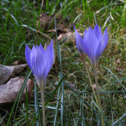 Crocus speciosusAutumn crocus is a striking autumn-blooming bulb, native to regions around the Black Sea, including Turkey, the Caucasus, and northern Iran. Unlike its spring-blooming cousins, it flowers in fall with large, lilac to violet-blue petals often appearing before the leaves. It's a hardy bulb that naturalizes well in gardens, bringing unexpected color late in the season. It also provides a valuable late nectar source for pollinators preparing for winter.
